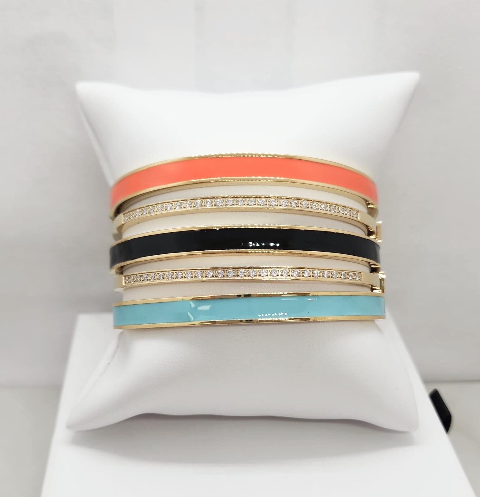 Add a vibrant pop of color to your jewelry collection with these sleek enamel bangles. Designed for effortless stacking, each bracelet features a smooth enamel finish framed in polished gold-tone stainless steel. Mix and match to suit your mood or wear them solo for a chic, minimalist statement.