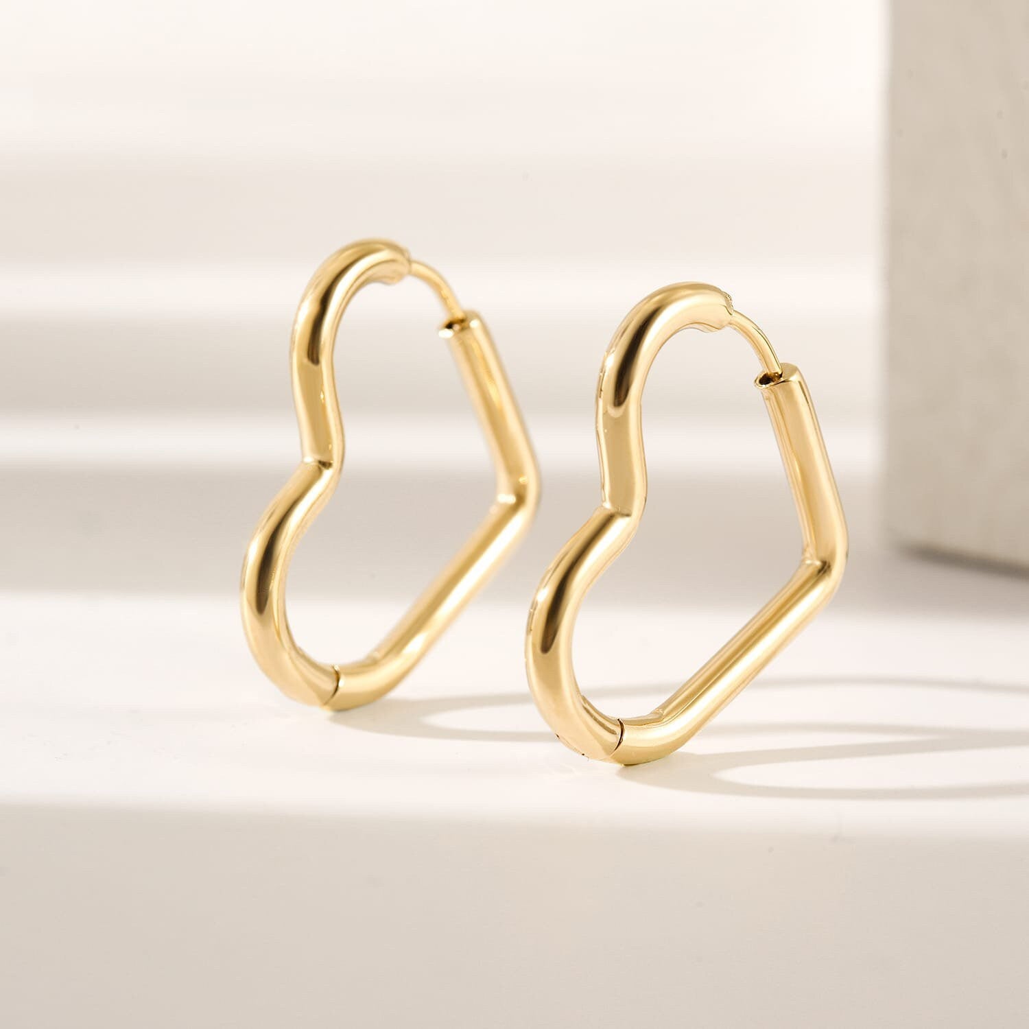 Modern Gold Heart Hoop Earrings