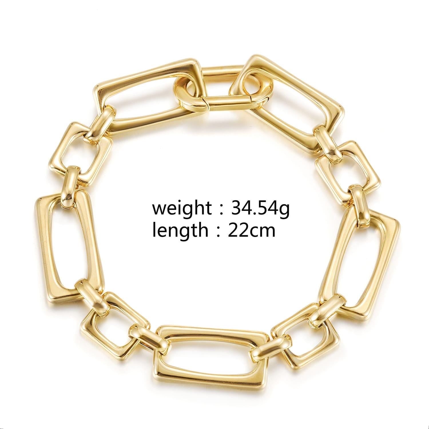 Elevate your everyday look with the Bold Link Rectangle Bracelet — a modern statement piece crafted from polished gold-tone links. Featuring oversized, open rectangular and square-shaped links, this bracelet adds a touch of geometric flair and high-shine sophistication to any outfit. Lightweight yet impactful, it’s perfect worn solo or stacked for a bold layered look.